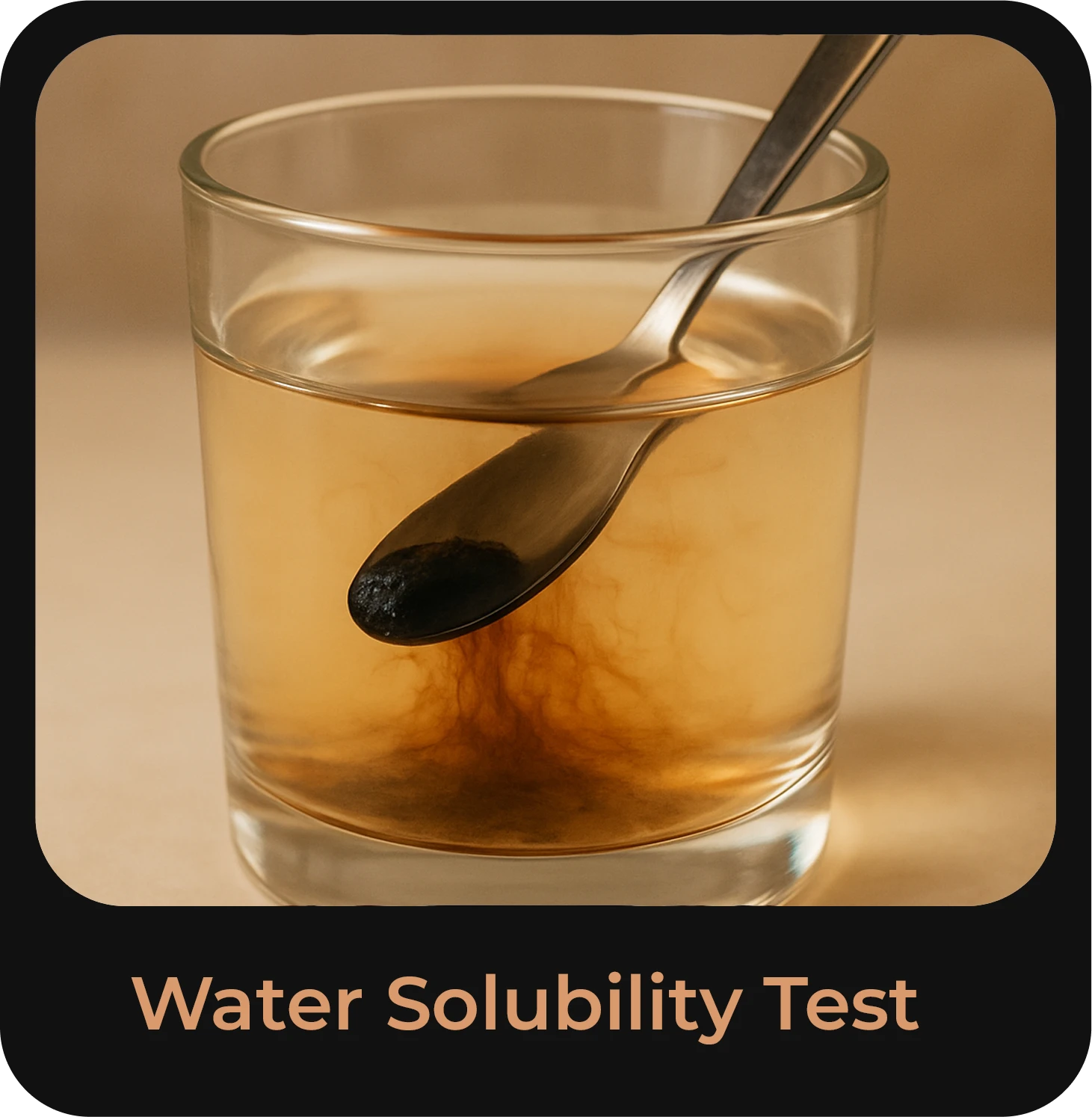 Mix a small amount in water and use a pH strip. Pure Shilajit has a slightly acidic to neutral pH (6.5–7.5) and does not leave grit, chalky residue, or artificial flavors in the water.