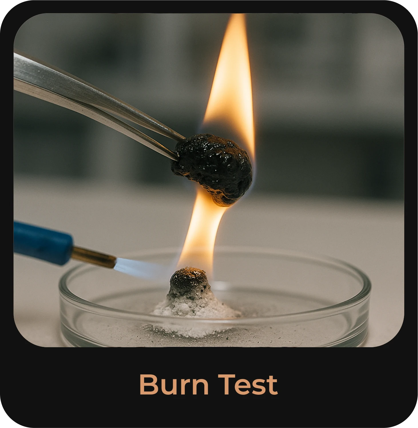 Place a small piece of FulvicEarth™ Shilajit on a spoon and heat it with a flame. Authentic Shilajit will not catch fire but will bubble and emit a distinct tar-like smell. Fake Shilajit may burn like plastic.